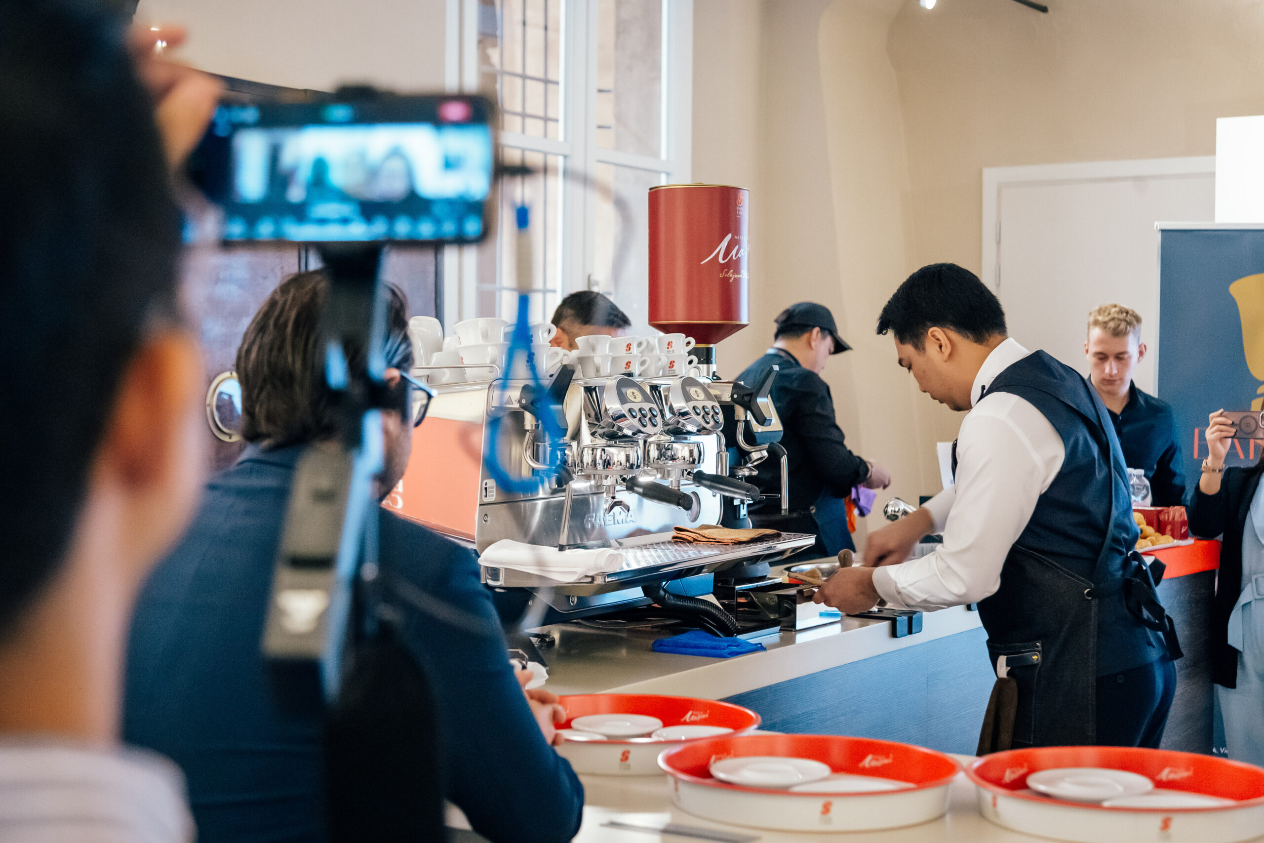 • Preparare 2 espressi, 2 cappuccini certificati italiani e una propria ricetta distintiva a piacere a base di caffè (es. macchiatone, cappuccino di soia, montebianco, mixology, altre bevande calde…).